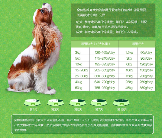 干糧飼喂,請隨時給您的愛犬提供充足的清水。根據季節、運動量及身體其他原因的變化,酌情增減喂食量。